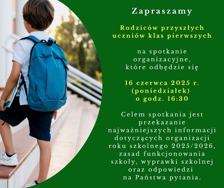 Zapraszamy Rodziców przyszłych uczniów klas pierwszych na spotkanie organizacyjne