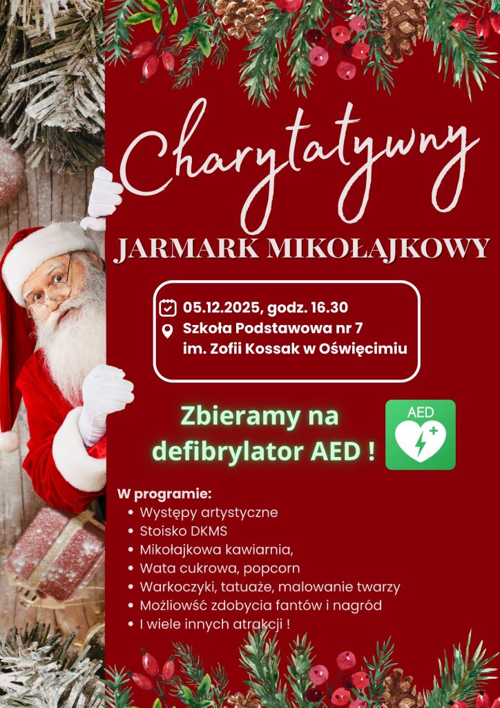 Podczas jarmarku zbieramy środki na zakup defibrylatora AED, który może uratować życie w sytuacji nagłego zatrzymania krążenia.