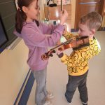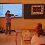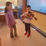 Uczniowie znaleźli również czas na spotkanie z muzyką – uczennica klasy IV opowiedziała o budowie skrzypiec, wykonala mały koncert, a niektórzy odważyli się nawet zagrać.